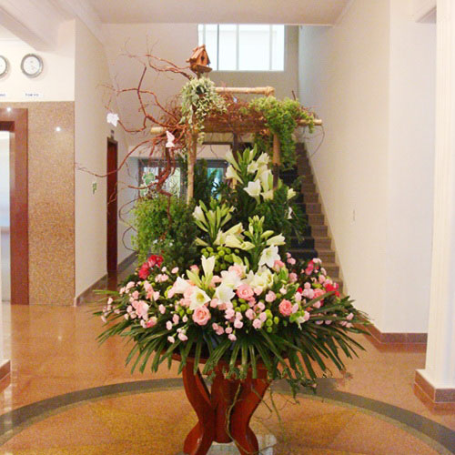 Hoa tươi Bình Dương chuyên thiết kế hoa tươi trang trí đại sảnh bằng hoa tươi, hoa tươi đại sảnh là một trong những vật dụng trang trí không thể thiếu trong nhà hàng, khách sản, hội nghi, tiệc cưới. Chúng tôi nhận tư vấn và trang trí hoa tươi đại sảnh tận nơi khi quý khách có nhu cầu sử dụng dịch vụ hoa tươi của Hoa tươi Bình Dương.