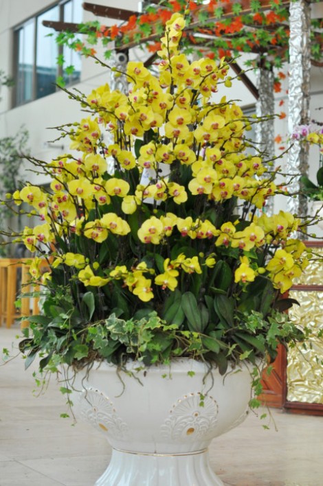 Chậu hoa lan hồ điệp được ghép bởi 100 cây lan hồ điệp màu vàng