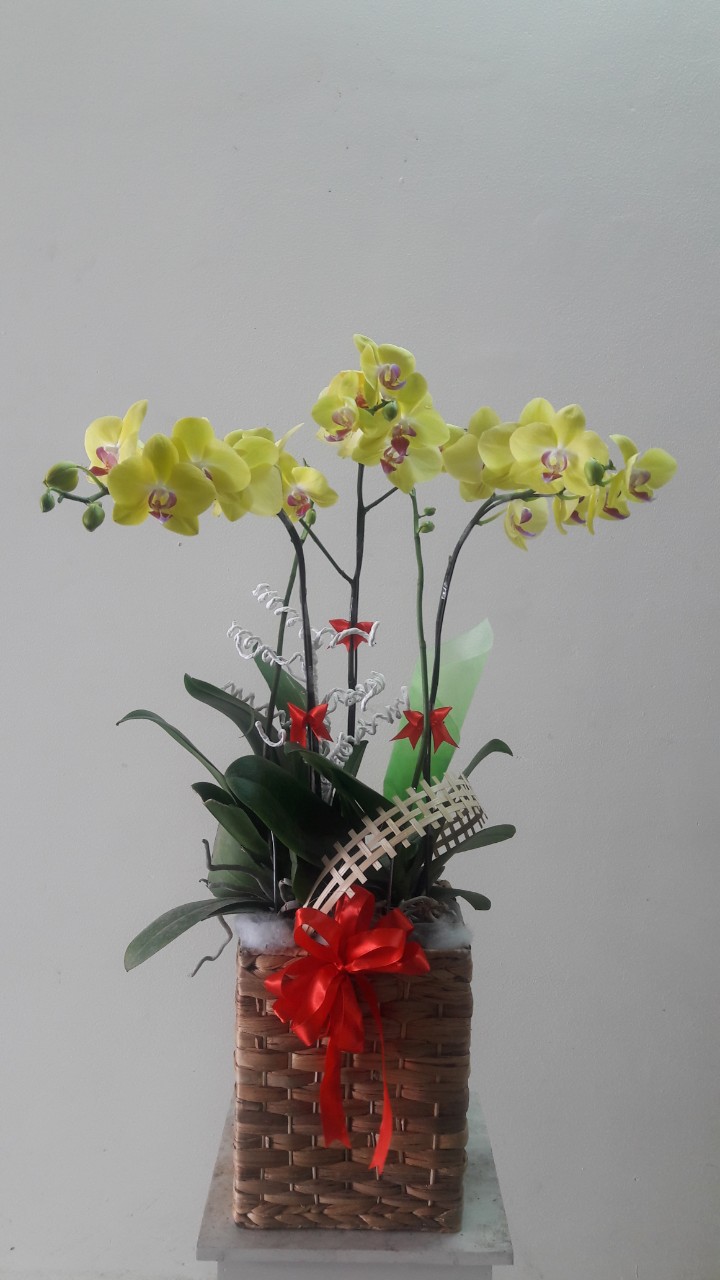 Sản phẩm chậu hoa lan hồ điệp màu vàng là 100% hoa lan của Đà lạt or Đài loan