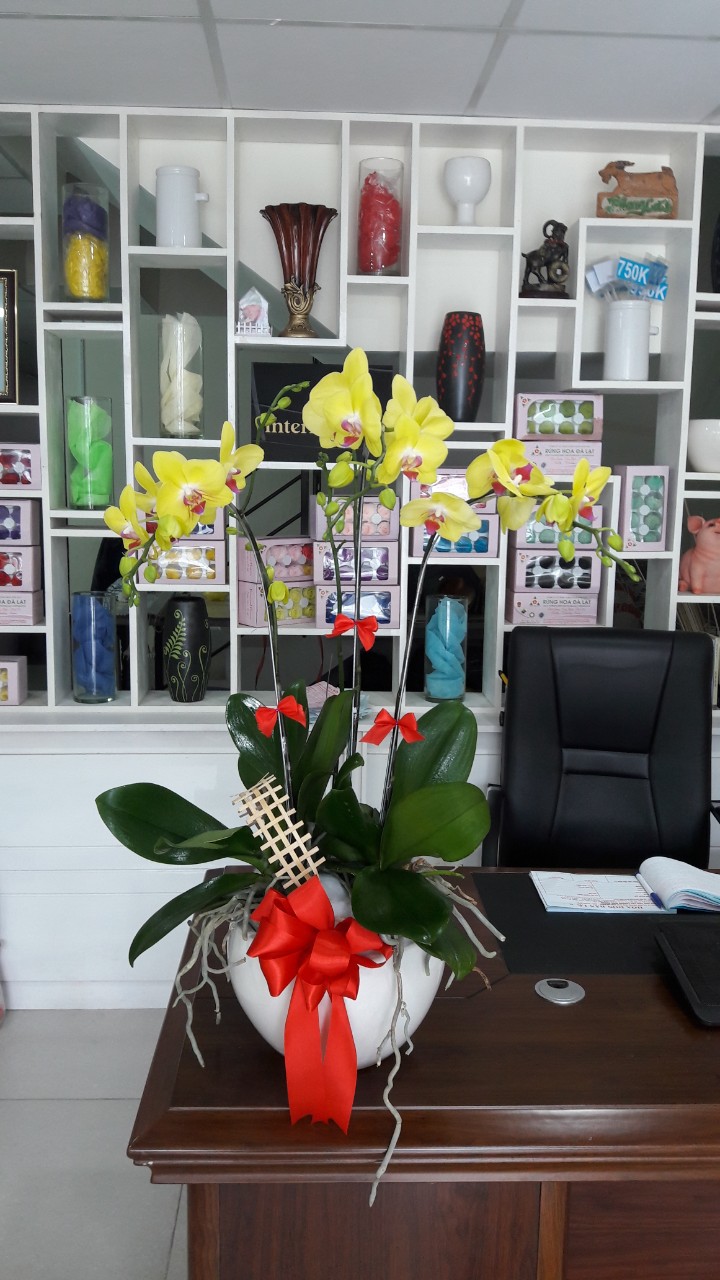 Sản phẩm chậu hoa lan hồ điệp màu vàng là 100% hoa lan của Đà lạt or Đài loan